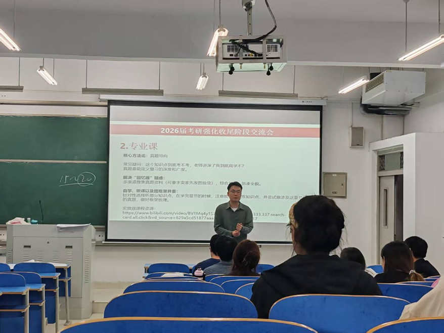 9月26日晚,金融学院于弘文楼1213C教室成功举办2026届考研强化阶段交流会。本次讲座由我院经验丰富的柏栋皓老师主讲,吸引了众多备考学子踊跃参与。