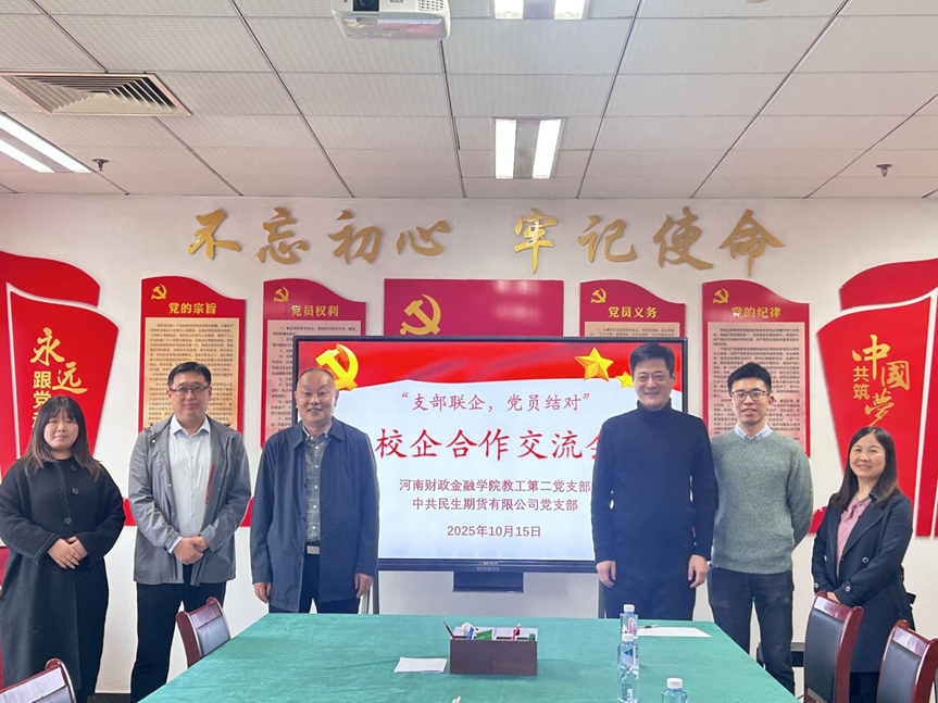 民生期货党支部负责人对共建模式表示高度认可。他指出,期货行业的发展离不开高素质专业人才和前沿学术研究的支撑,希望通过支部共建,不仅在组织生活、党员教育等方面加强交流,更能在学生实习、行业培训、课题研究等方面开展务实合作,构建校企协同育人与产学研融合的长效机制。