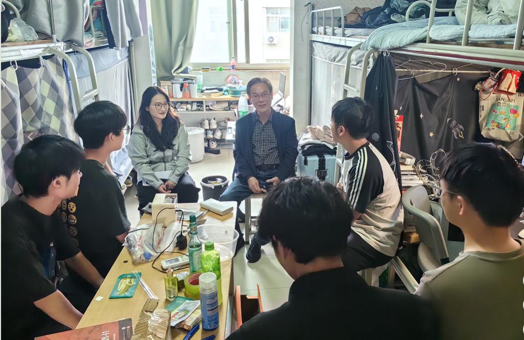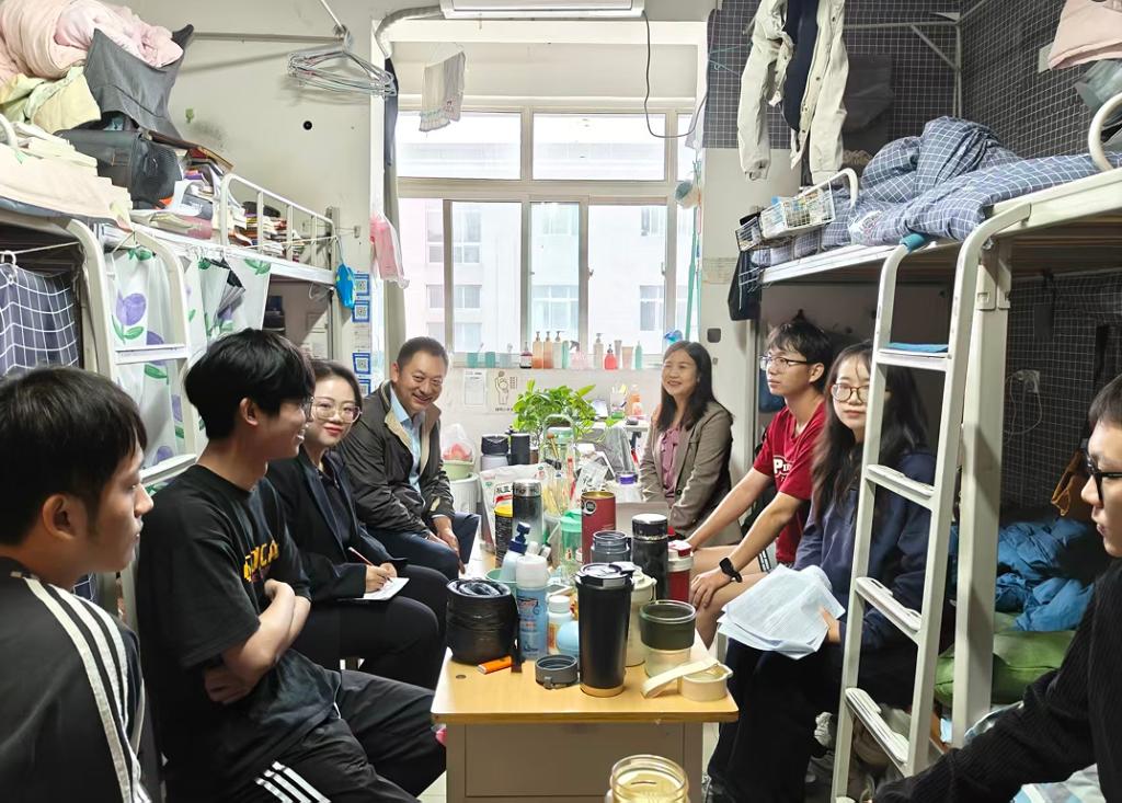 “假期生活安排得怎么样?”“在学习或生活上有没有什么困难?”每走进一间宿舍,学院领导都与同学们亲切交谈,悉心询问他们的住宿条件、饮食安排与假期生活,尤其关注考研学子的备考进展,叮嘱大家注意劳逸结合,保持积极心态,以坚定的信心迎接挑战。走访过程中,学院领导和老师们还细致检查了宿舍设施安全与环境卫生,对潜在风险进行现场排查,并协调相关部门及时整改,致力于为同学们打造一个更加安全、舒适、温馨的生活空间。一句句问候饱含深情,一声声叮嘱温暖人心,让远离家乡的学子真切感受到学院大家庭的温暖。