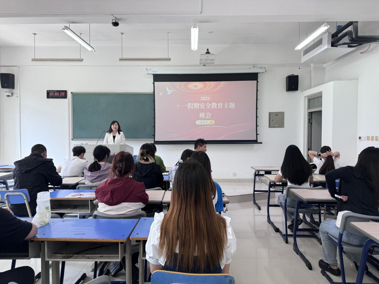 为筑牢校园安全防线,切实保障学生在校学习生活及国庆假期的平安有序,9月29日,金融学院组织各班级集中开展了以“强化责任意识,筑牢安全防线”为主题的2025年秋季学期安全稳定主题班会。