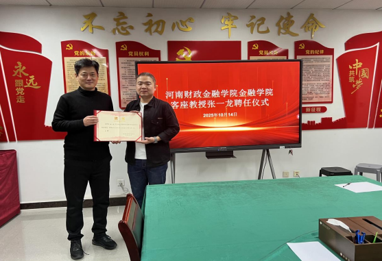 讲座结束后,王院长对张一龙经理的精彩分享表示衷心感谢,并对本次讲座的成功举办给予高度评价。王院长代表学院正式聘任张一龙经理为河南财政金融学院客座教授,期待他未来能为学院期货特色人才培养和学科专业建设贡献更多智慧与力量。